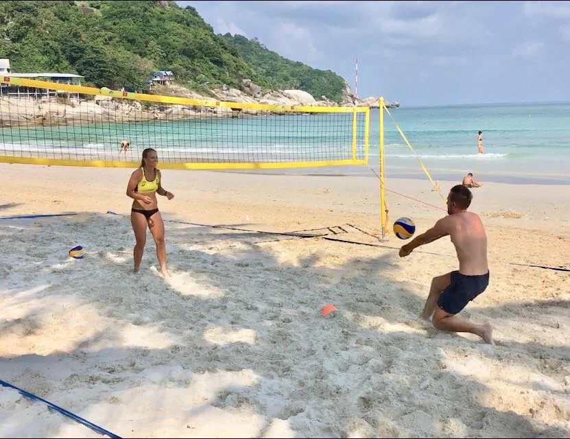 "In June 2018 I was on Koh Phangan for two weeks, and I was looking for fun activities to do while on the island. I stumbled across Charlie and Katie’s volleyball training, and decided to sign up. I’m not a serious player, so I wasn’t sure if I should sign up. I loved everything about it, and I’m glad I did. They were able to coach at my level, and my skills improved dramatically. I had a lot of fun playing, and it was great exercise. I also made new friends, and connected with people through volleyball that lead to other fun activities while on my holiday. With my new skills I’m excited to get involved in a league at home. I highly recommended this program". - Steve Dunford (Chicago, IL)